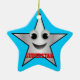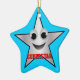 This ornament features a character that has a happy, laughing face in a silver coloured star outlined in black. A wonderful token of achievement.