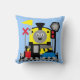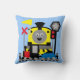 Smiling Train pillow features train locomotives and train tracks, a railroad crossing sign, flag, traffic signal, and one of the trains has eyes and is smiling! If your child loves trains and locomotives, he'll love this train pillow.