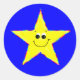 Bright yellow smiling star matches all the kids are stars designs.  Can be used as party favour, on name tags or in party games.  Original art and design by Anura Design Studio.