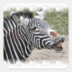 Zebra smacking his lips in a photo design.