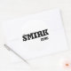 round sticker to promote Smirk Zine, 6 stickers to a sheet