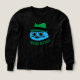a playful cartoon character with a smirking blue face and a green hat accompanied by bold text reading the boss captures a humorous and whimsical expression