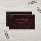 Fancy and elegant professional business card with a classy gold font. The background is an abstract design with wispy smoky marble on a rich dark reddish brown background. Gold text gives it a classy elegant vibe.