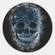 Happy Halloween with a smokey, spooky, blue watercolor Skull art sticker.
