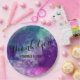 For the couple whose love story is written among the stars...galaxy themed wedding plates are sure to catch everyone's eye! Text details are customisable and are over a space background in purple, blue, green, pink, and white.