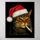 Smoking Cat Cigarette Christmas Santa Hat Cat Meme Poster