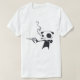 Thin white and grey striped vintage style womens tshirt with an illustrated black and white cartoon picture of a panda smoking a cigarette and armed with a pistol. This funny edgy tshirt is perfect for the stylish alternative girl with a sense of humour.
