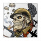 Smoking Skull with Helmet, Aeroplanes and Bombs Tile