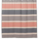 This stylish shower curtain features trendy stripes in dark and light grey, coral, and beige. A great way to add colour to a neutral bathroom!