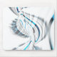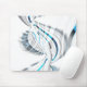 Smoky grey ripples and blue chrome curves on white mouse pad