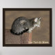 A smoky grey tabby cat perched on the edge of a chair against a neutral background. Customise by adding your own text. You may change both the font and text colour.
