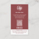 The back is designed to provide all the necessary salon information in a clean, centred layout. With a smoky topaz background, it showcases: