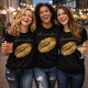 "Smooches" Black and Gold Lipstick print is a lovely design for you. This black shirt features "Smooches" written across the front in gold cursive text, with a gold lipstick print. Choose from a variety of shirt colours. Purchase yours today!