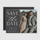 A modern save the date magnet designed to accommodate your favourite vertical or portrait orientated engagement photo. "Save the date" appears alongside your photo in chic block and script lettering, with your names, wedding date and wedding location beneath.