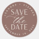 An elegant way to seal your save the date envelopes, these chic stickers in neutral earth tone terracotta brown feature "save the date" in the centre with your names and wedding date curved around in a circular layout. Designed to match our Smooth Script wedding save the date collection.