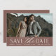 A modern save the date card designed to accommodate your favourite horizontal or landscape orientated full-bleed engagement photo. "Save the date" appears beneath your photo in chic block and script lettering, along with your names, wedding date and wedding location. Cards reverse to reveal additional save the date details.