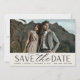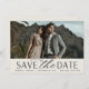 A modern save the date card designed to accommodate your favourite horizontal or landscape orientated full-bleed engagement photo. "Save the date" appears beneath your photo in chic block and script lettering, along with your names, wedding date and wedding location. Cards reverse to reveal additional save the date details.