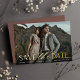 A modern save the date card designed to accommodate your favourite horizontal or landscape orientated full-bleed engagement photo. "Save the date" appears near the bottom of your photo in gold foil block and script lettering, with your names, wedding date and wedding location beneath. Personalise the back with additional details, such as your wedding website.