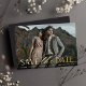 A modern save the date card designed to accommodate your favourite horizontal or landscape orientated full-bleed engagement photo. "Save the date" appears near the bottom of your photo in gold foil block and script lettering, with your names, wedding date and wedding location beneath. Personalise the back with additional details, such as your wedding website.