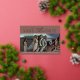 A modern save the date card designed to accommodate three vertical engagement photos aligned side by side. "Save the date" appears beneath your photos in gold foil block and script lettering, along with your names, wedding date and wedding location. Personalise the back with additional details, such as your wedding website.