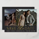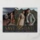A modern save the date card designed to accommodate two engagement photo (one vertical and one horizontal, aligned side by side). "Save the date" appears beneath your photos in gold foil block and script lettering, along with your names, wedding date and wedding location. Personalise the back with additional details, such as your wedding website.