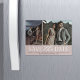 A modern save the date magnet designed to accommodate two engagement photos aligned side by side. "Save the date" appears beneath your photos in chic block and script lettering, with your names, wedding date and wedding location beneath, along with your wedding website or additional details.