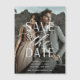 A modern save the date magnet designed to accommodate your favourite vertical or portrait orientated full-bleed engagement photo. "Save the date" is overlaid on the centre of your photo in white block and script lettering, with your names, wedding date and wedding location beneath.