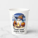 Create unique personalised paper cups for the camping theme Halloween party with kids with a cute design that features a cheerful ghost in a witch hat roasting marshmallows at the campfire at night. The saying "S'more Ghost Stories, Please" is perfectly suitable for the outdoor non spooky party. The template makes it easy to personalise with your family name or any text.