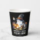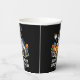Make unique personalised black paper cups for the camping theme Halloween party with kids and friends with a cute design that features a cheerful ghost in a witch hat roasting marshmallows at the campfire. The graphic is with the saying "S'more & Boos Spooky Crew." The template makes it easy to customise with your family name or any text for the non spooky outdoor party with children.