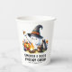 Make funny personalised paper cups for the camping theme Halloween party with kids with a cute design that features a cheerful ghost in a witch hat roasting marshmallows at the campfire. The graphic is with the saying "S'more & Boos Spooky Crew." The template makes it easy to customise with your family name or any text for the non spooky outdoor party with children.