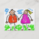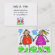 Smudgy childlike chalk drawing of a happy couple holding hands. A personalised business card for couples.