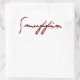 Nice big oval with good adhesive backing. Surface is glossy and pretty making the sticker look nice from a distance. Printing came out great. Image is a scripted word and the lines were clean and clear making it easy to read.