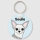 Cute chihuahua keychain can be customised with your favourite text, background colour and font.