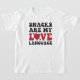 Snacks Are My Love Language is Perfect for snack lovers, foodies, and anyone who believes love is best expressed through food! Celebrate Valentine’s Day with a design that’s all about your favourite snacks, cooking, and witty food quotes. Whether you're gifting it to a friend, family member, or someone who loves to laugh at funny sayings and sarcasm, this design is sure to make an impression. Ideal for Valentine’s Day, birthdays, or any occasion where humour and food come together, this shirt will bring smiles and laughter to all who see it. Grab this fun design and spread the snack love!