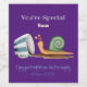 An illustration of a snail and a striped cup with the text 'Enjoy your breakfast and don't be naughty'. Personalise it with your name.