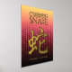 Celebrate the Chinese new year with this striking gold foil poster, which features the Chinese letterform for the Snake, the sixth sign/animal in the Eastern zodiac, and traditional celebratory Chinese greetings, pseudo-embossed on a gold-to-red gradient background.
