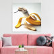 A snake's head is seamlessly blended with a peeled banana, creating a surreal and imaginative fusion