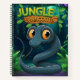 Personalise the back cover of this adorable "Jungle Welcome" notebook! Featuring a unique whimsical baby indigo snake cartoon graphic tropical animal character in a lush nighttime forest scene, inviting you into a world of imagination and creativity. This reptile design is perfect for serpent lovers, woodland safari nature wildlife fans, and anyone who enjoys cute, cosy zoo vibes.