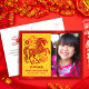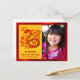 “Happy New Year” red faux foil typography in both Chinese and English, a stunning visual of a graphic red faux foil snake, flowers and clouds, your names, and the photo of your choice overlay a traditional Asian yellow circle pattern and brushed red faux foil border on the front. On the back are a red cloud and star visual, your personal message and return address. Feel the warmth and joy of the holiday season whenever you send this stylish yet modern, personalised 2025 Chinese Lunar New Year of the Snake photo postcard. Make sure someone special receives this greeting!