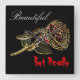 A Ball Python Snake curled around a red and gold Rose clock for Snake lovers.dangerous beauty collection. gift idea.