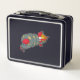 This is a standard metal lunchbox that appears to work just fine. We designed this box ourselves with an uploaded photo and custom text on the front and back. It looks absolutely beautiful except the front of the lunchbox is not centered like it shows in the photo. The print borders don't align with the inset flat part of the box where the preview photo online showed it perfectly centered in there. The back looks nice and centered though.