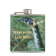 Well made flask, a little better than I had expected. Flask came in clear plastic box which gave it a nice presentation when I took it out of the zazzle packaging. Image is not printed on flask but on sticker. Don't know how this will hold up I haven't used it yet. This would make a Great gift! I plan to purchase more for friends! Cheers. I thought a little brighter than computer. Very crisp, writing wasn't
