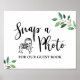 SNAP A PHOTO FOR OUR GUEST BOOK sign featuring a beautiful greenery calligraphy design for your wedding.