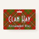 Go to your next clan gathering with this handsome Clan Hay tartan plaid name tag.