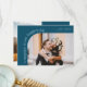 Modern and playful wedding thank you photo card featuring a text that says "a snapshot of our happiest day" along the curved framed photo. You can add another photo on the back with a message. Teal.