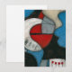Snare drum is a contemporary abstract painting in red, white and blue along with black and tan. It consists of random curved shapes with pencil drawn lines, red dots, stripes and a thicker black stripe near the centre to finish off the piece.