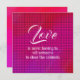 Snarky Valentines Day Card in pink and red gingham look. Funny saying: Love is never having to tell someone to close the cabinets.