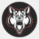 Drawing of a wolf head with wide-open, fang-bared mouth. B/W art on t-shirts, hoodies, cards, gifts.