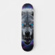 Unleash the wild on the streets with this captivating skateboard deck design featuring a ferocious, snarling wolf head. Rendered in a stunning dark fantasy illustration style, every detail of its textured fur is brought to life, culminating in piercing, electric blue glowing eyes that command attention. Set against a mystical backdrop of a cosmic nebula swirling with deep purples and blues, this design evokes raw power and otherworldly energy. Perfect for riders who embrace their inner beast and want a board that truly stands out from the pack. Ride with the spirit of the wolf.