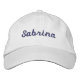 Leave your house in style with this attractive embroidered hat. The letters are thick and fancy. But if you don't like them, feel free to change their style and even their colour. Customisable. Sharon Lee Hudson.